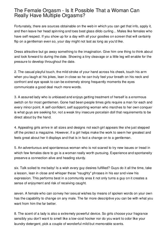 Not because women can't have multiple orgasms. If she has had an orgasm, and not faked it, she may “plateau”, but within seconds or.
